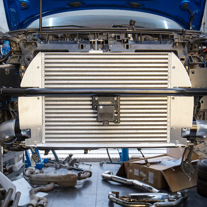 Built around a custom bar-and-plate core with 110mm thickness, CFD-optimized airflow, and billet-machined end tanks for ultimate performance. -