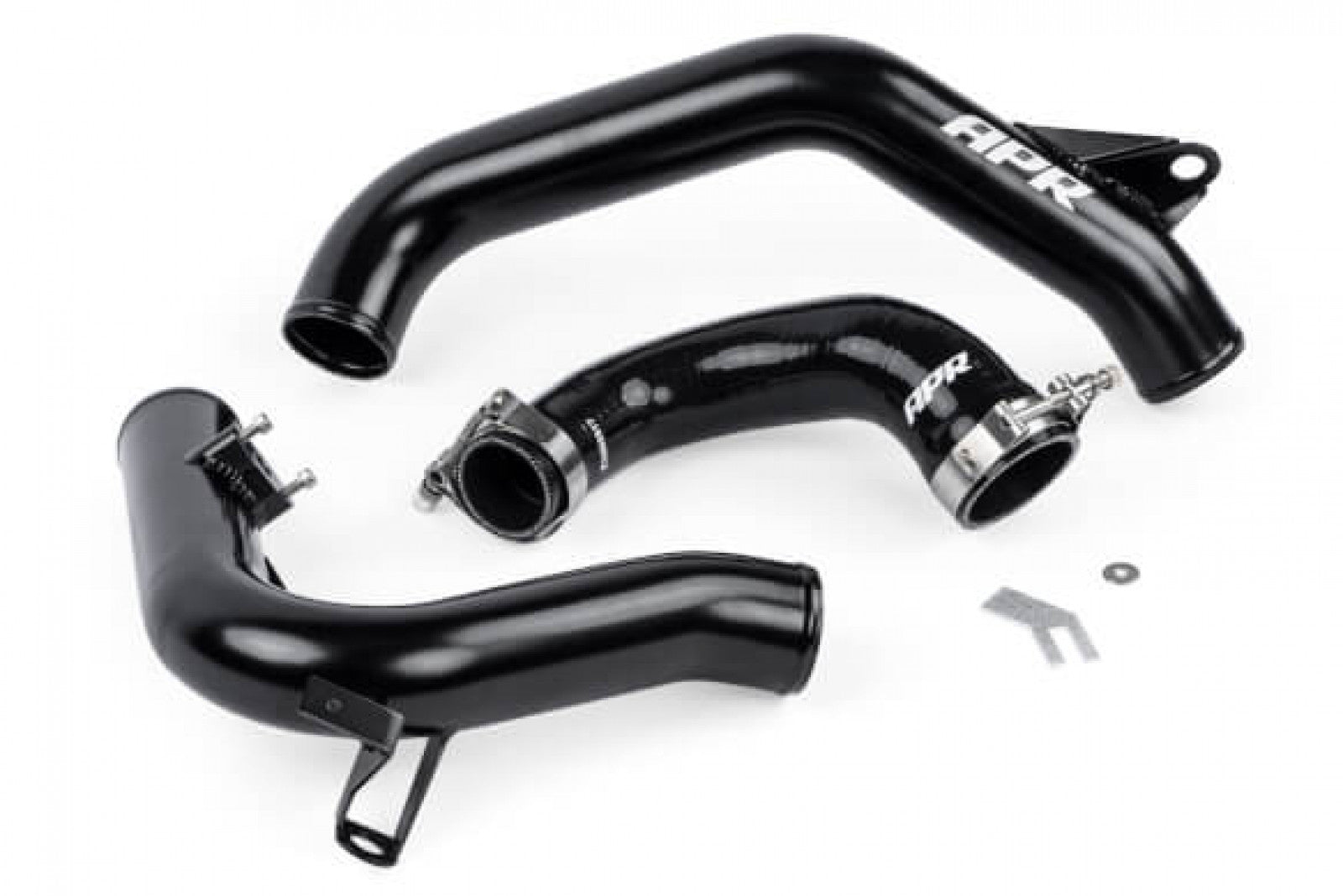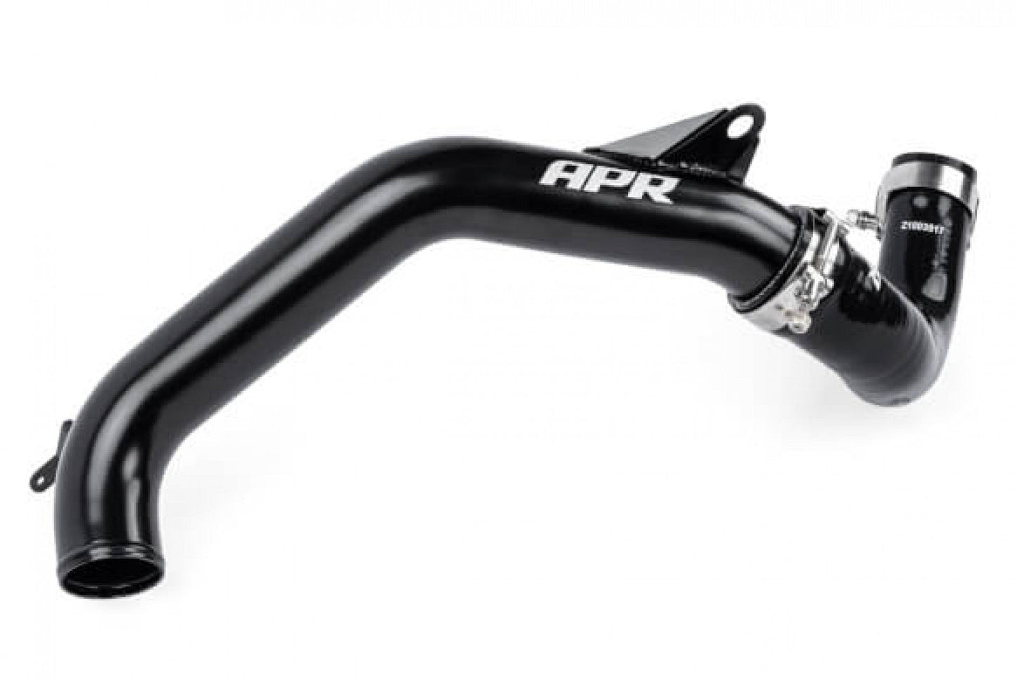 The APR Charge Pipe System is a comprehensive, direct replacement upgrade, to the factory system. The factory plastic and rubber turbo outlet pipe is a small and restrictive 38mm pipe that has shown to melt, deform, and cause boost leaks under extreme conditions. The APR System remedies this by upgrading the system to a larger 60mm aluminum pipe, along with a new multi-ply fluorosilicone coated turbocharger outlet hose. APR EZ-Flow stepped lip hoses provide a smooth transition from hose to pipe, and the included T-bolt clamps ensure a strong and leak-resistant seal at the pipe. All brackets are TIG-welded for a strong and precise fit, and the pipe is coated black. A protruding lip at the edge of the pipe helps prevent hose slippage. This pipe is a direct fit to the OEM turbocharger and the APR or OEM intercooler hose. APR Recommends upgrading the intercooler hoses as well for maximum performance and reliability. We upgrade the factory plastic with a strong 60mm aluminum pipe. Due to the thin-walled nature of metal vs plastic, we're able to increase the internal diameter of the pipe to maximize airflow. The MAP sensor mounting point is made from CNC-machined billet-aluminum. All brackets are TIG-welded for a strong and precise fit, and the pipe is coated black. A protruding lip at the edge of the pipe helps prevent hose slippage. This pipe is a direct fit to the APR or OEM throttle body hose, as well as the APR or OEM intercooler hose. APR recommends upgrading the throttle body and intercooler hoses as well for maximum performance and reliability.